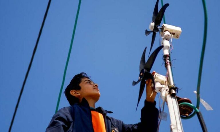 Το ειδησεογραφικό πρακτορείο Reuters εντόπισε, ανάμεσα στα τσαντίρια ενός προσφυγικού καταυλισμού στη Γάζα, μια πρόχειρη εγκατάσταση για την παραγωγή ενέργειας με την χρήση του αέρα και του ήλιου. Υπεύθυνος της κατασκευής είναι ένας 15χρόνος, τον οποίο οι άλλοι πρόσφυγες αποκαλούν Νεύτωνα. Δύο ανεμιστήρες, λίγα παλιοσίδερα και καλώδια ήταν αρκετά για να χαρίσουν λίγο φως στο τσαντίρι όπου διαμένει η οικογένεια του κοντά στη Ράφα. «Ο Νεύτωνας καθόταν κάτω από μια μηλιά όταν έπεσε στο κεφάλι του ένα μήλο με αποτέλεσμα να ανακαλύψει τη βαρύτητα», λέει ο Χουσάμ Αλ-Ατάρ. «Κι εμείς εδώ ζούμε μέσα στο σκοτάδι και ρουκέτες πέφτουν στα κεφάλια μας. Σκέφτηκα να δημιουργήσω φως και έκανα την κατασκευή αυτή».